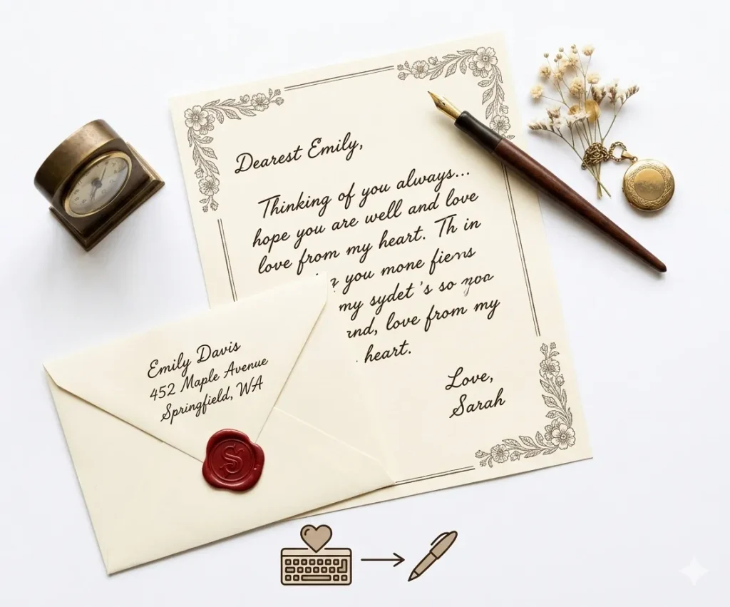Genere cartas o mensajes escritos a mano para darle un toque más personal. Ideal para invitaciones, notas de agradecimiento o mensajes cortos cuando desea que el texto parezca escrito a mano.