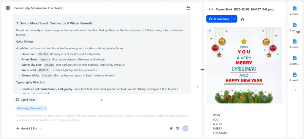 En resumen, exploramos cómo Nano Banana Pro mejora el diseño arquitectónico gracias a sus potentes funciones y casos de uso prácticos. Otro paso clave en el flujo de trabajo de diseño es la creación de mood boards. Con Resumen de imágenes de iWeaverPuedes subir varias imágenes en lotes y generar al instante resúmenes concisos de sus elementos visuales. Usa las indicaciones a continuación para analizar fuentes de inspiración, comparar la estética de los productos y refinar tu dirección creativa.
