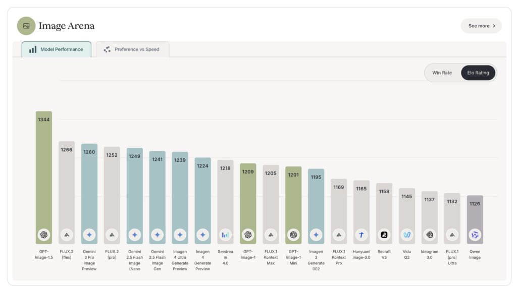 Arena de diseño Se publicaron las cifras de rendimiento de los modelos visuales, donde la imagen GPT 1.5 superó la vista previa de la imagen de Gemini 3 Pro, publicada recientemente, y se ubicó en primer lugar. El tema más candente en redes sociales en este momento sigue siendo el enfrentamiento entre Imagen GPT 1.5 y de Google Nano plátanoPreguntar «quién es más fuerte» es demasiado unidimensional. La mejor pregunta es sobre las compensaciones.