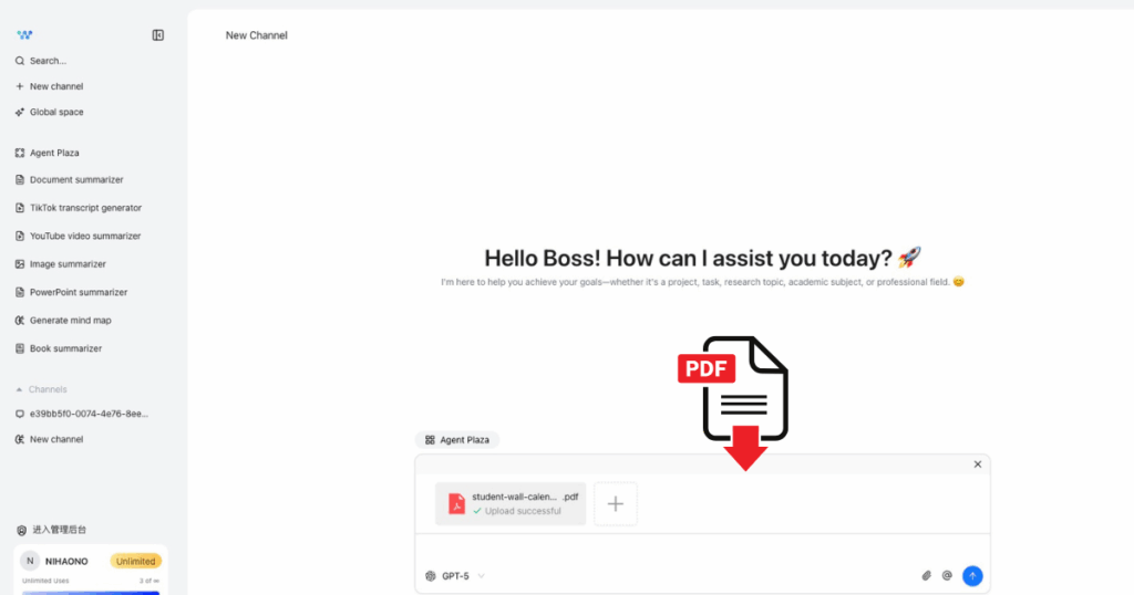 Paso 1: Ve a “Chatea con cualquier contenido” En la sección de iWeaver, suba su documento y haga clic en el Enviar Botón para iniciar el modo de chat PDF.