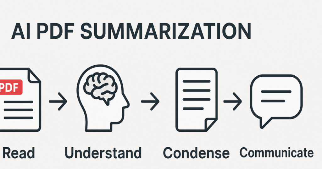 Piensa en la generación de resúmenes de PDF mediante IA como “Leer → Comprender → Condensar → Comunicar”.