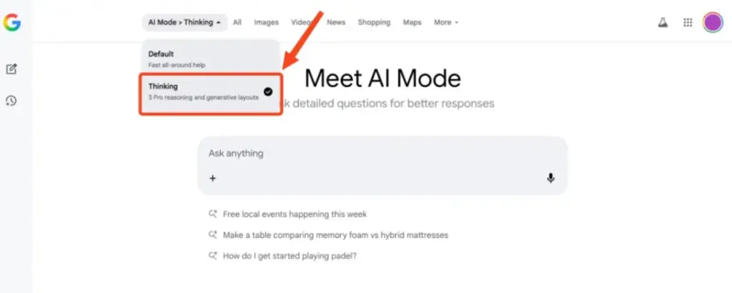 Este modo se está implementando actualmente en una prueba de caja gris, principalmente para algunos usuarios. Google AI Pro y Suscriptores UltraPara comprobar si tienes acceso, abre la página principal de la Búsqueda de Google y haz clic en el botón Modo IA situado a la derecha del cuadro de texto; si puedes cambiar el modelo en la esquina superior izquierda, tienes acceso. Gemini 3 Pro Integrado en tu experiencia de búsqueda.