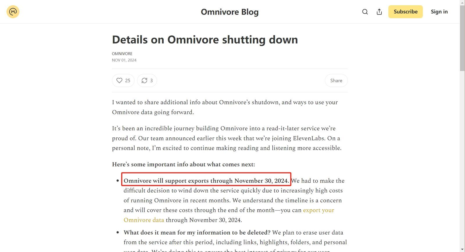 El cierre repentino de Omnívoro, un popular servicio de lectura posterior, ha dejado a muchos de sus usuarios buscando una alternativa. Con el anuncio de que Omnivore dejará de admitir exportaciones después de 30 de noviembre de 2024Los usuarios compiten contrarreloj para proteger sus datos y encontrar un reemplazo. Pero con tantas opciones disponibles, ¿cuál ofrece realmente el mismo nivel de valor y más? Si busca una solución integral y a prueba de futuro, iWeaver, una plataforma de gestión del conocimiento impulsada por IA, podría ser la opción ideal.