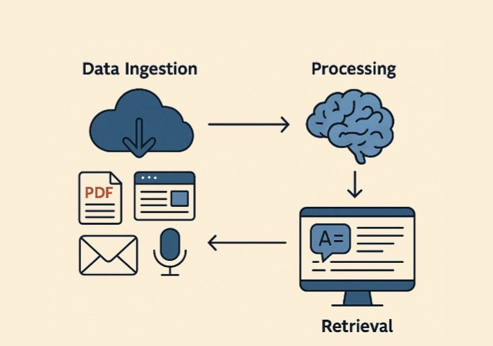 En esencia, las bases de conocimiento de IA operan a través de un ciclo de tres etapas. Primero, ingesta de datos Extrae información de diversas fuentes (como archivos PDF, páginas web, correos electrónicos o grabaciones de voz) y la convierte a un formato unificado. A continuación, tratamiento Utiliza IA para analizar estos datos, identificando patrones, extrayendo puntos clave y estableciendo conexiones (por ejemplo, vinculando un artículo de investigación con una noticia relacionada). Finalmente, recuperación Ofrece respuestas a las consultas de los usuarios, a menudo en lenguaje natural, con resultados clasificados por relevancia. No se trata de almacenamiento estático, sino de un proceso dinámico donde el sistema se perfecciona con cada interacción.